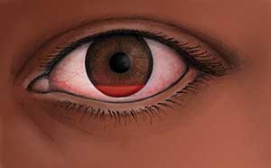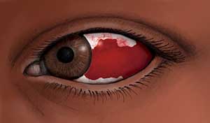 Red sore eyes caused by sudden bright light, eg ultra violet light from arc welder. May not be aware of it until several hours later
