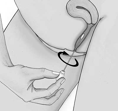 • Put tip of swab about 2–4cm (length of 1–2 finger joint) inside vagina — Figure 6.16