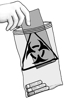 • Put absorbent material (such as blueys) in biohazard bags with specimens in case of leakage — Figure 5.1