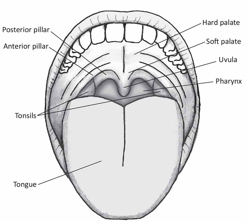 - Look at soft palate, posterior pillars, uvula, tonsils, pharynx