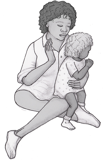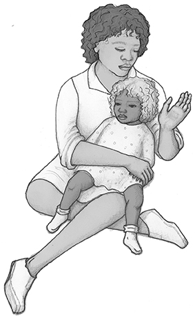 • With child leaning forward on lap or over shoulder, percuss back of chest wall near shoulder, both sides — Figure 9.9