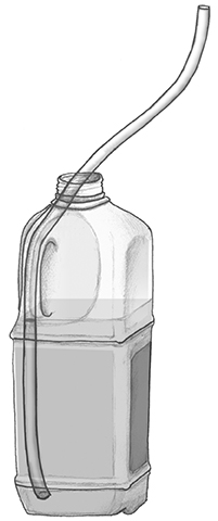 • Wash tubing and bottle in warm soapy water, dry thoroughly after use. Use a clean dry bottle and tube each day