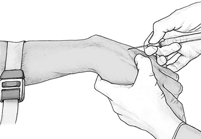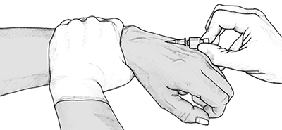 • Pull person’s skin down to hold vein still — Figure 4.13
